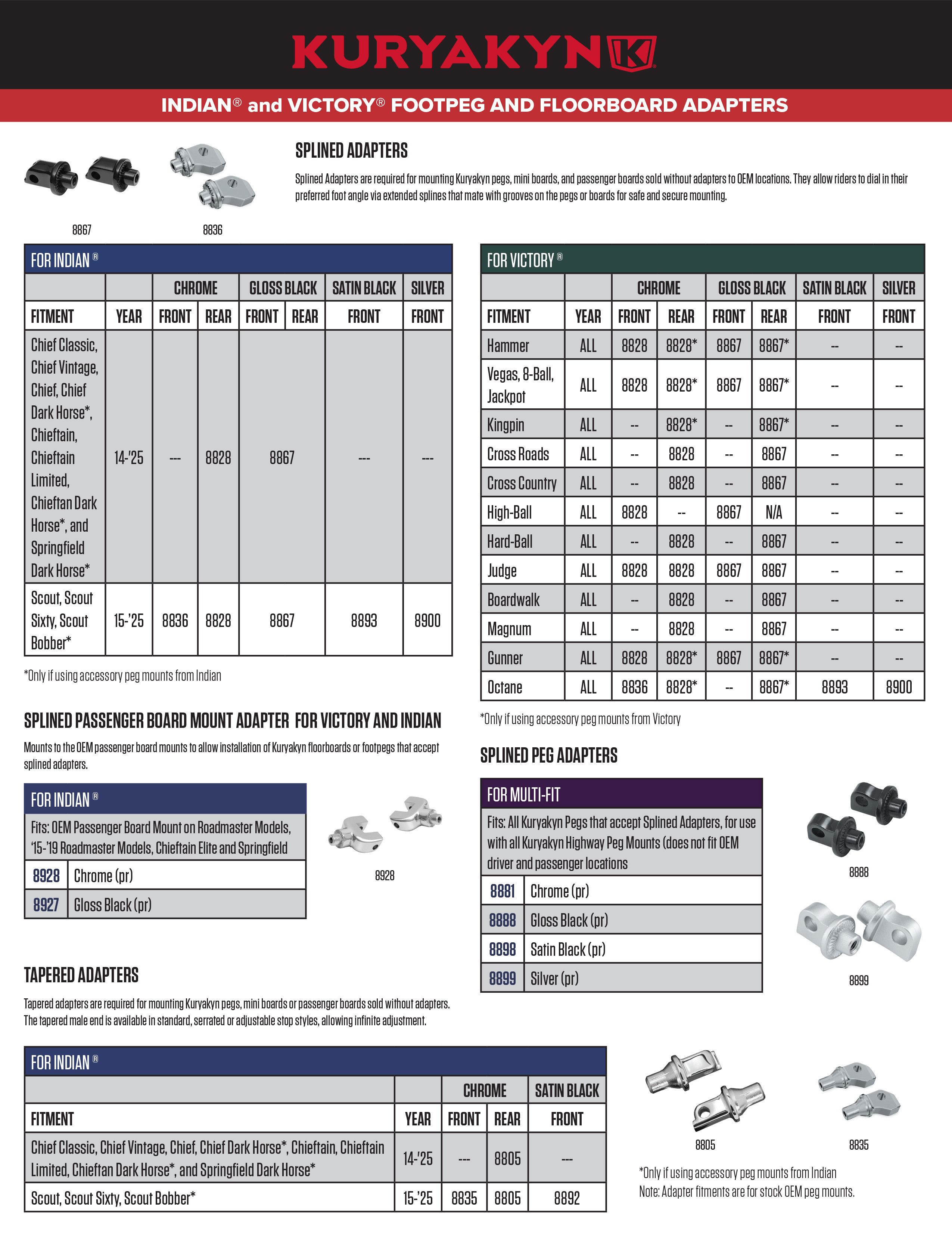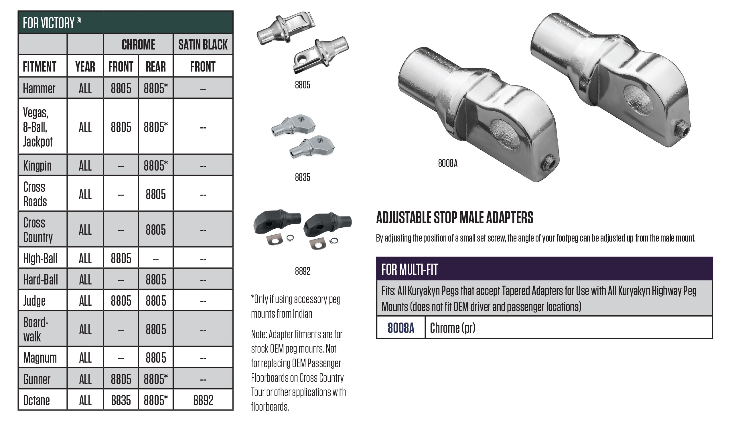 Indian and Victory Footpeg and Floorboard Adapters Chart